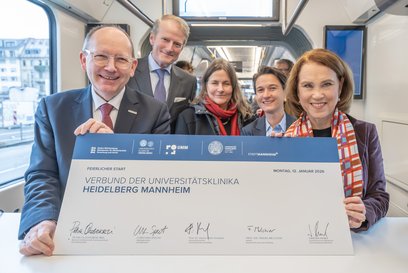 Mit einer feierlichen Auftaktveranstaltung haben das Ministerium für Wissenschaft, Forschung und Kunst (MWK) Baden-Württemberg, die Universität Heidelberg, das Universitätsklinikum Heidelberg, die Stadt Mannheim und das Universitätsklinikum Mannheim den Start des Verbunds der beiden Universitätsklinika in Heidelberg und Mannheim begangen. Auf einer gemeinsamen Fahrt von Mannheim nach Heidelberg in einem Sonderzug unterzeichneten Vertreterinnen und Vertreter der beteiligten Einrichtungen symbolisch die Verträge, die den Verbund der beiden Häuser besiegeln. Den Abschluss bildete eine Feierstunde im Hörsaal der Kopfklinik auf dem Medizin-Campus in Heidelberg mit rund 400 geladenen Gästen aus Politik und Gesundheitswesen sowie Förderern und Mitarbeitenden der beiden Universitätsklinika.